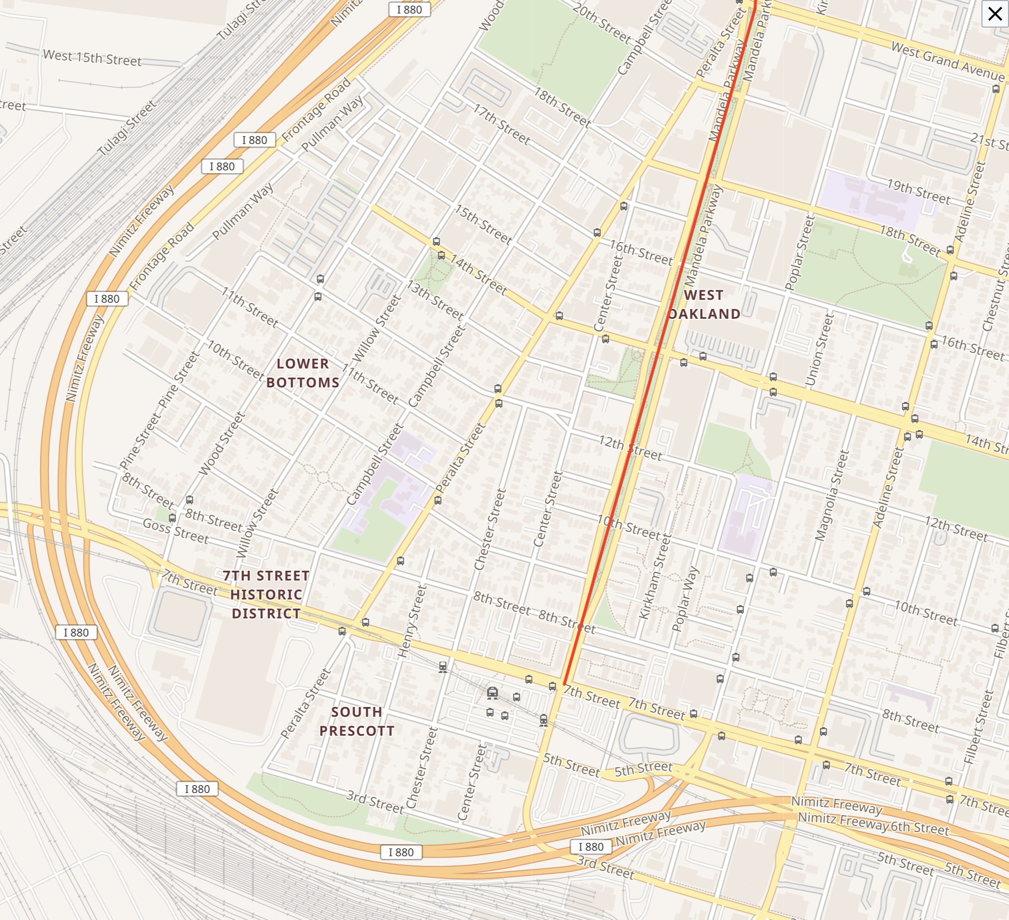 Planners also put the line overground. This was not a West Oakland-specific problem – the Berkeley BART line also originally ran aboveground, until the neighbourhood gathered together and raised the money to put it underground. It took nontrivial amounts of political organization, too – BART originally tried to claim that it would cost $10m per mile to put the line underground, but Berkeley residents hired their own engineers and argued that it could be done for $5m per mile.