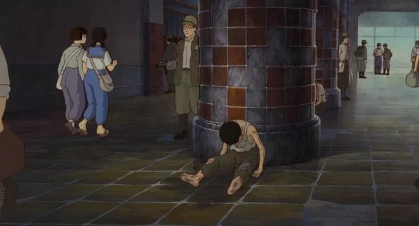 Left: God warriors destroy the world in Nausicaa. Right: A homeless boy starves in Kobe Sannomiya Station just after the end of WWII, in Grave of the Fireflies. I loved Ghibli movies as a kid, but they scared me.